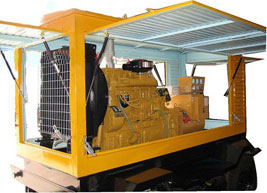 门源柴油发电机组/移动柴油发电机组设计独具创新,机动性高、重心低、制动安全、制造精良、外形美观。 门源拖车车架采用槽梁焊接成框架结构,节点选择合理、强度高、刚性好;同时装有钢板弹簧悬架结构;拖车采用高度可调节插销式牵引架,适用于各种高度牵引车;采用圆形钢管焊接直通式车轴,结构紧凑,安全可靠;车架四角设有机械式支撑装置,配备惯性行车制动、驻车制动和脱离应急制动,确保机组在各种状况下的安全;车架前端设有支撑轮,具备承受机组垂直载荷的功能的同时还具备导向功能;整车配备转向和刹车指示灯,同时装有尾灯标准插头